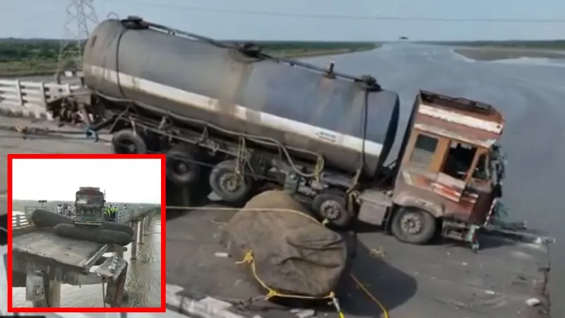 Gujarat : ગુજરાતના આણંદ જિલ્લામાં ગંભીરા પુલ દુર્ઘટનામાં ફસાયેલા રસાયણોથી ભરેલા ટેન્કરને બહાર કાઢવા માટે એક ખાસ બચાવ કામગીરી હાથ ધરવામાં આવી છે. આ ટેન્કર છેલ્લા 27 દિવસથી પુલ પર લટકતું હતું, જેને દૂર કરવા માટે પોરબંદરના મરીન ઇમરજન્સી રિસ્પોન્સ સેન્ટર (MERC) ની નિષ્ણાત ટીમ ઘટનાસ્થળે પહોંચી ગઈ છે. કલેક્ટર પ્રવીણ ચૌધરીએ જણાવ્યું હતું કે કામગીરીના ભાગ રૂપે, ટેન્કરની નીચે એક ખાસ ન્યુમેટિક એરબેગ (બલૂન) મૂકવામાં આવ્યું હતું, જેની મદદથી તેને ધીમે ધીમે ઉપર ઉઠાવવામાં આવ્યું હતું.